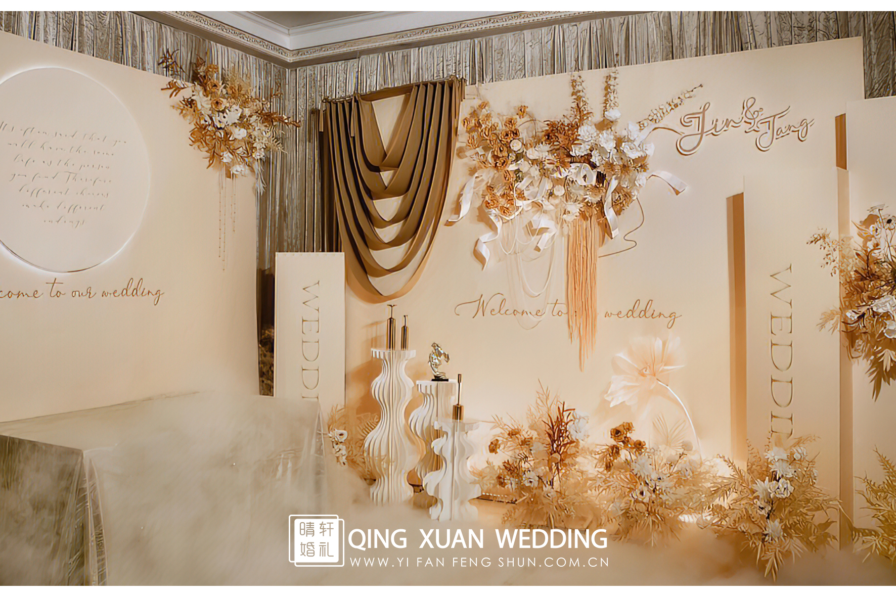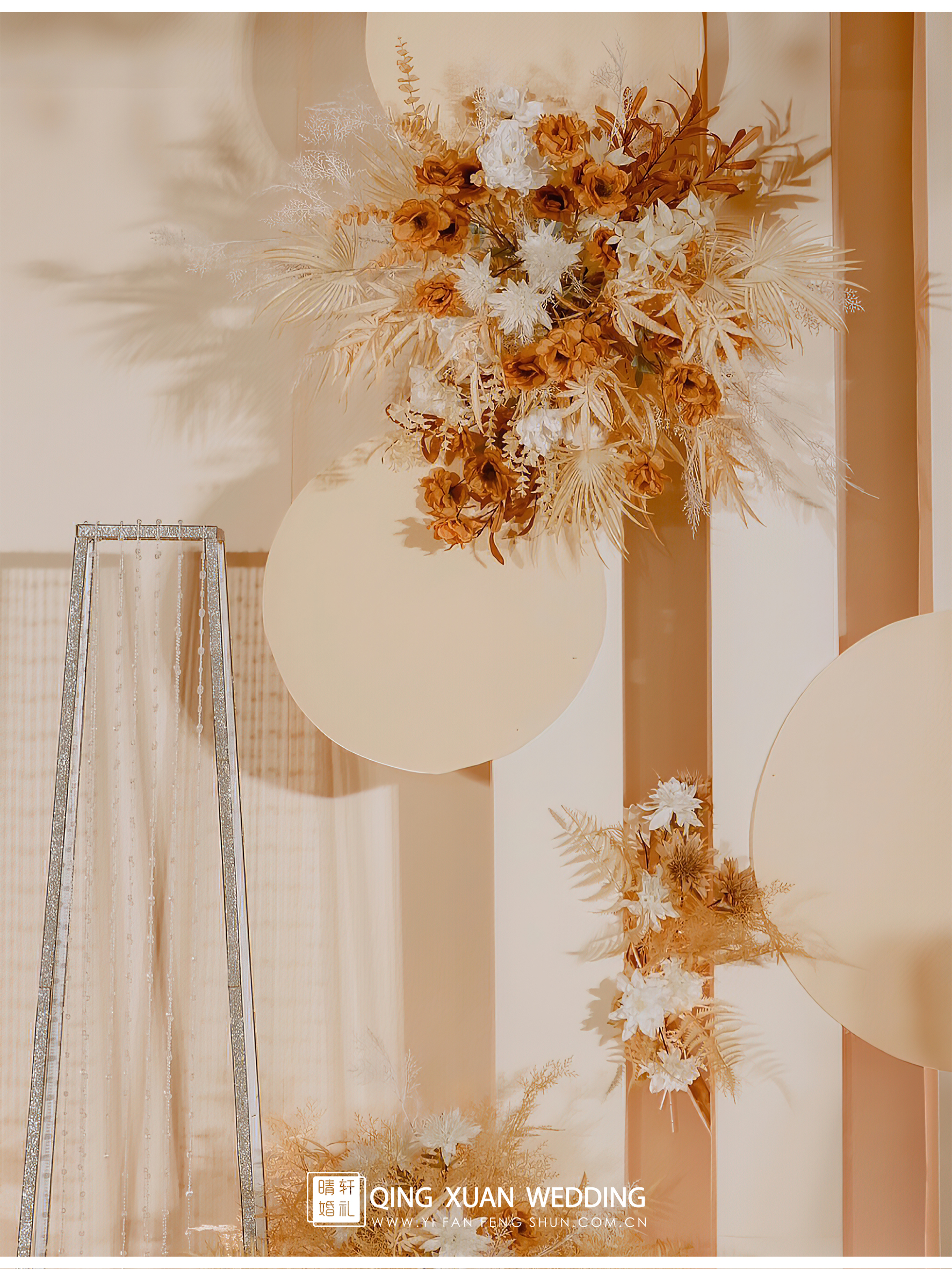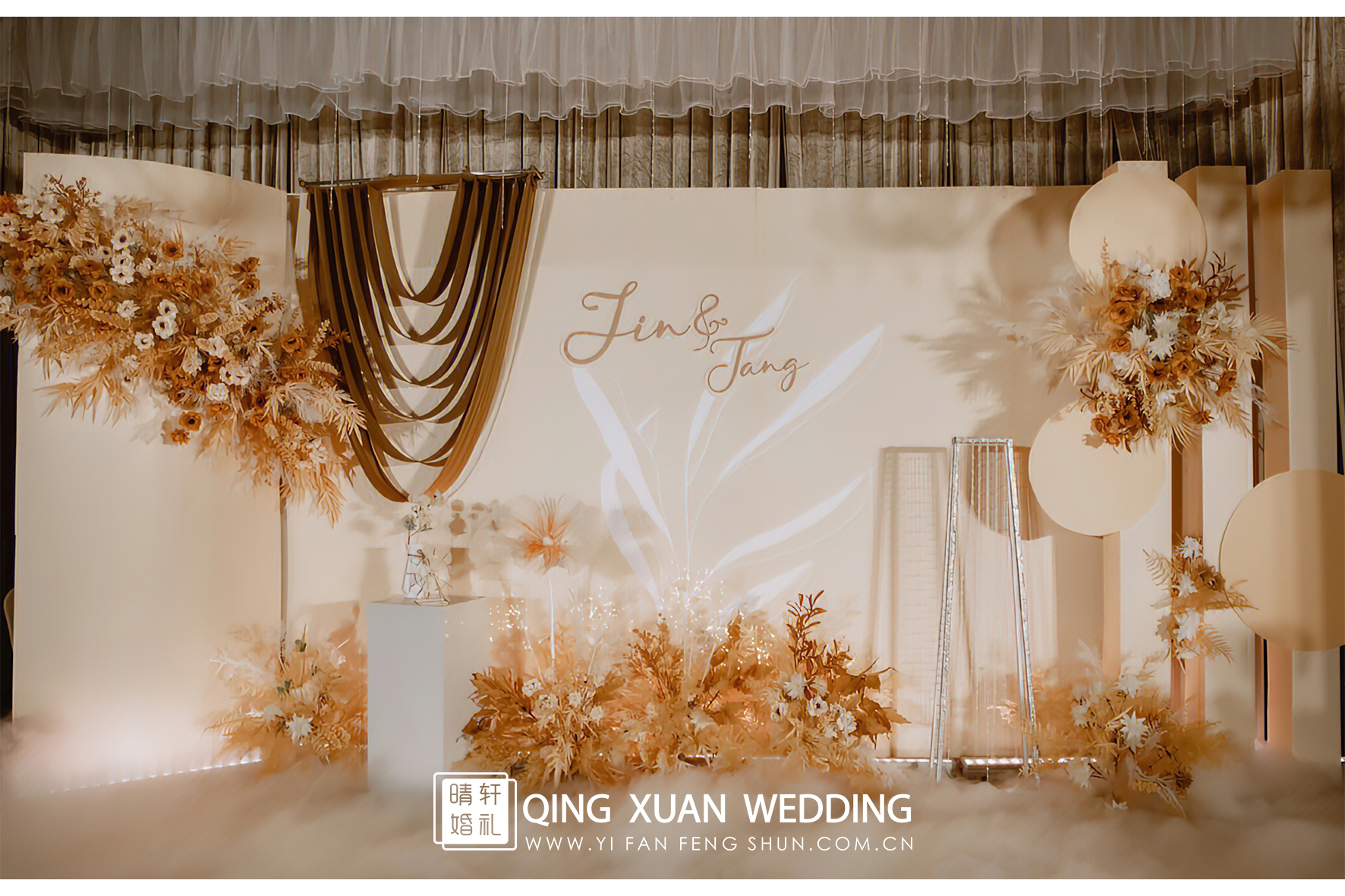 璀璨水(shuǐ)晶,柔美(měi)曲線,在燈光(guāng)變換下(xià)φ∑白(bái)紗搖曳,邀請(qǐng)我們進入一(yī≈ )片缱绻浪漫的(de)星月(yuè)傳奇之中。。香槟色是(shì)一(y¥εī)種淡淡的(de)黃(huáng)色,讓人(rén)覺得(≈$ de)很(hěn)溫馨很(hěn)舒服,如(rú)果是(™ ₹★shì)在深秋或者寒冬使用(yòng)這(zhè£₽)種顔色的(de)主題婚禮,還(hái)能(n€→β★éng)給來(lái)賓帶來(lái)溫暖感受。香槟色還(hái)有(yβδ€ǒu)浪漫優雅的(de)一(yī)面,所以它也(yě)非常适合在儀式區(q∏βū)布置。以香槟色作(zuò)主要(yào)色調,搭配上β¶£(shàng)金(jīn)色綢緞,讓婚禮≤¥儀式區(qū)盡享溫馨浪漫。